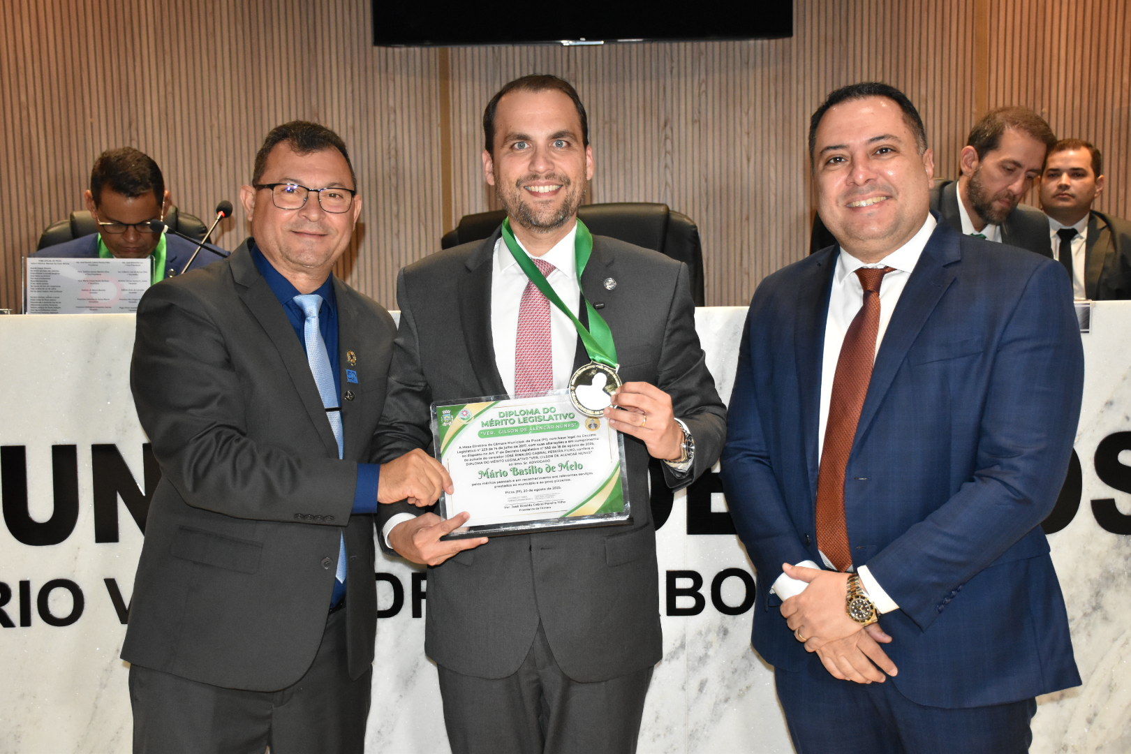 Entre os homenageados esteve o advogado Mário Basílio, agraciado com a Medalha do Mérito Legislativo “Vereador Gilson Nunes”. A comenda é considerada uma das mais importantes da Casa e simboliza o reconhecimento público ao trabalho de personalidades que marcam a vida da cidade.
