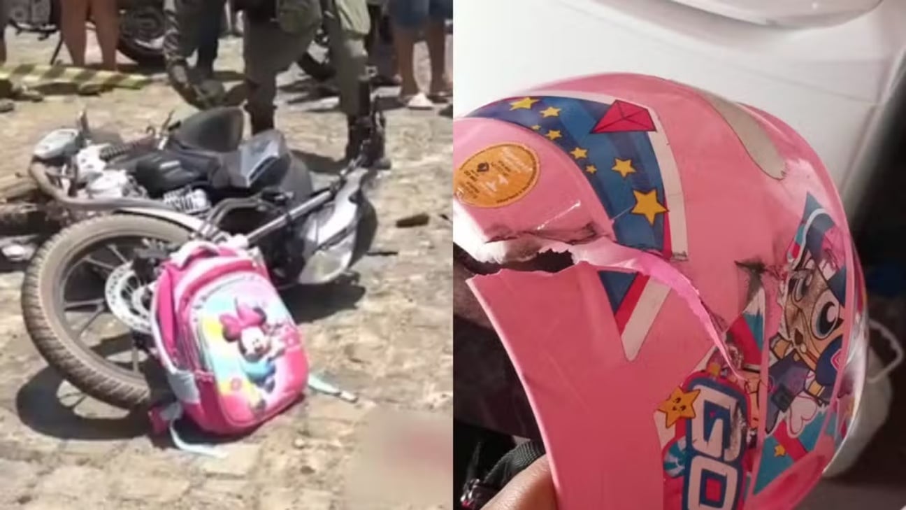 De acordo com a TV Clube, mãe e filha estavam na motocicleta quando o caminhão atingiu a traseira do veículo. As duas caíram. A criança usava capacete, mas o equipamento foi lançado com o impacto e chegou a rachar.