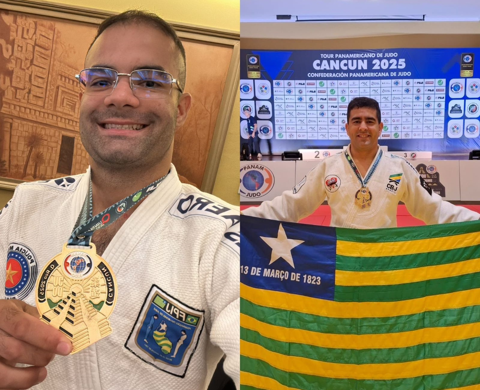 O cabo da Polícia Militar, Stanley Torres, e o 1º Tenente Pedro Bento, do Corpo de Bombeiros Militar do Piauí (CBMEPI) conquistaram medalhas de ouro na disputa do Pan-Americano de Judô Veteranos, em Cancun, no México.