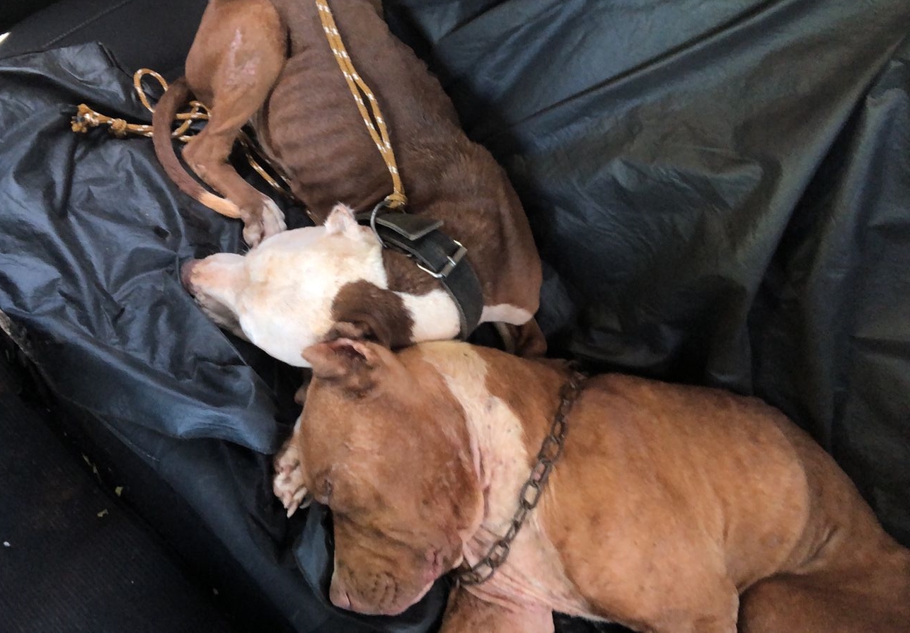 O casal de cachorros, aparentemente mãe e filho, estavam desnutridos, possuíam carrapatos e pulgas, e foram levados para atendimento veterinário, onde foram avaliados e submetidos a exames.
