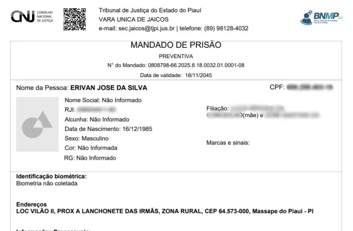 Diante da repercussão social, do avanço das investigações e o cenário de risco, a Delegacia de Jaicós solicitou à Justiça a prisão preventiva do investigado. O pedido foi analisado e acatado pelo magistrado, que destacou a necessidade da medida para garantir a ordem pública e proteger as partes envolvidas no processo.
