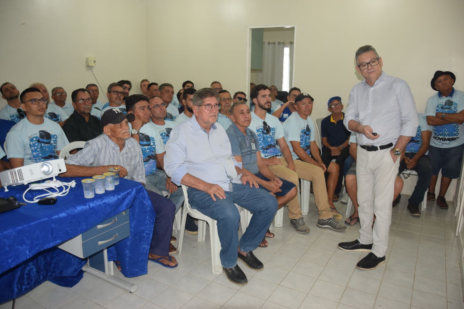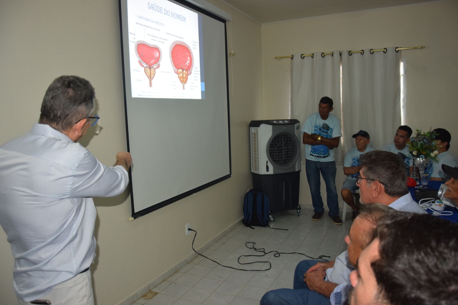 O evento teve início na sede da Secretaria Municipal de Saúde, onde foi ministrada uma palestra pelo urologista e cirurgião geral Edvar Soares. Durante sua fala, o especialista abordou temas essenciais como sintomas, cuidados, formas de prevenção e possibilidades de cura do câncer de próstata, reforçando a importância do diagnóstico precoce para a saúde do homem.