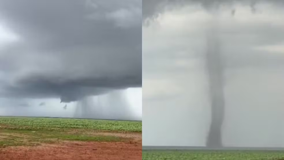 Um possível tornado foi registrado no município de Baixa Grande do Ribeiro, no Sul do Piauí, nesta quarta-feira (3). O fenômeno foi flagrado pelo piloto Fernando Rocha, que estava em uma fazenda na região no momento em que a coluna de vento se formou.