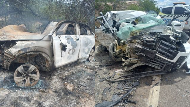 De acordo com o Corpo de Bombeiros, o impacto da batida foi tão intenso que um dos automóveis pegou fogo logo após a colisão. A guarnição foi acionada para conter as chamas. Uma das vítimas morreu carbonizada dentro do veículo incendiado.