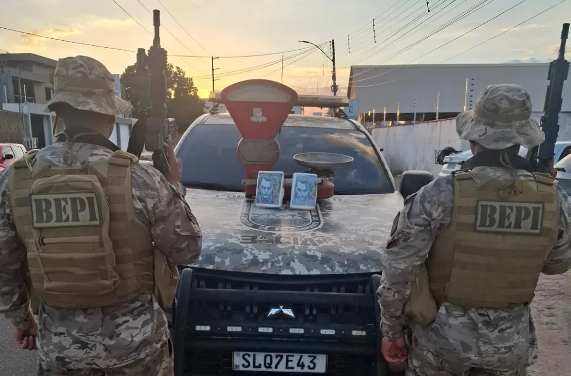 Durante as diligências, ao se aproximar do endereço indicado, os policiais visualizaram um indivíduo que, ao perceber a presença da viatura, empreendeu fuga, adentrando uma residência em estado de abandono. A equipe desembarcou e realizou varredura no imóvel e em seu perímetro, onde localizou dois tabletes de substância análoga à pasta base de cocaína, além de uma balança de armazém, comumente utilizada para pesagem de entorpecentes.
