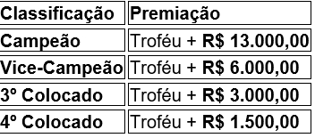 Além dos prêmios por colocação, os Goleiros Campeões e os Artilheiros das duas modalidades (Livre e Master) receberão um bônus de R$ 500,00 cada.