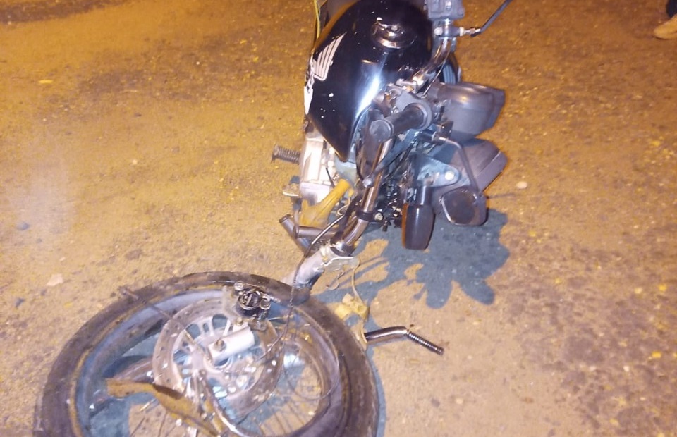 O mesmo pilotava uma HONDA/CG 125 FAN ES, com o impacto da colisão o pneu dianteiro da motocicleta foi arrancado. O pneu do outro veículo também sofreu avarias.