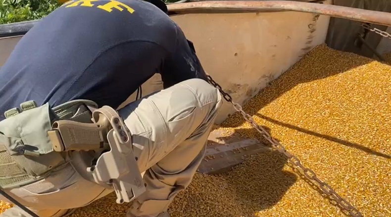 A droga estava escondida em uma carga de milho.