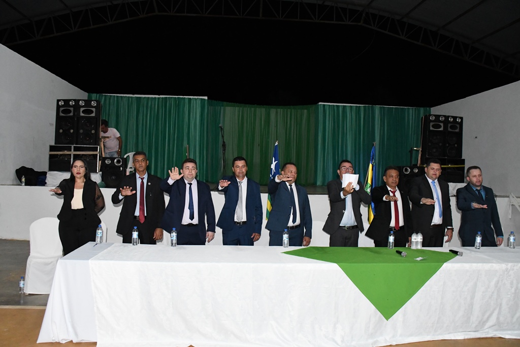 Após a posse dos vereadores eleitos, foi realizada a solenidade de posse do prefeito reeleito, Naerton Moura, e do vice-prefeito Chaguinha para o quadriênio 2025-2028.