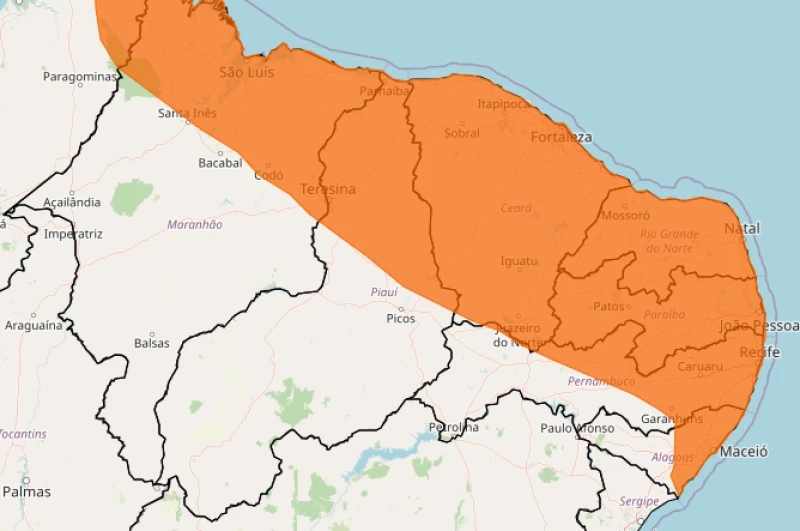 Confira as cidades na zona de alerta laranja: