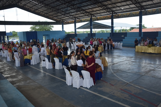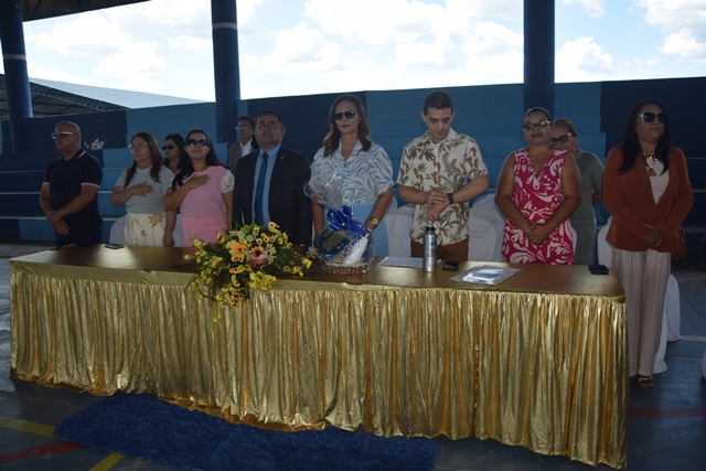 A abertura do evento foi realizada com a composição da mesa de honra, formada pelo prefeito Eudes Ribeiro; a primeira-dama e secretária de Educação Zildênia Ribeiro; secretária de assistência social, Eudiná Ribeiro; diretoras de escolas municipais; a presidente do conselho municipal de educação, Rosângela Ribeiro; presidente do CACS-FUNDEB Cilene Patrícia; o Pastor Gesiel Filho e esposa; professor Celso Ângelo, gerente da 16º GRE e o palestrante da tarde, Professor Pós-Doutor Saulo Cerqueira.