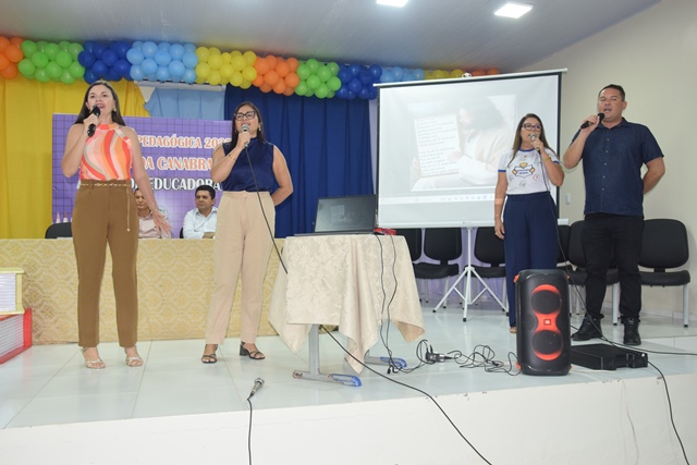 Em seguida, um grupo de canto formado por professores do município entoou um louvor repleto de fé e esperança, emocionando todo público no auditório e dando início às atividades do ano letivo de São João da Canabrava em comunhão com Deus.