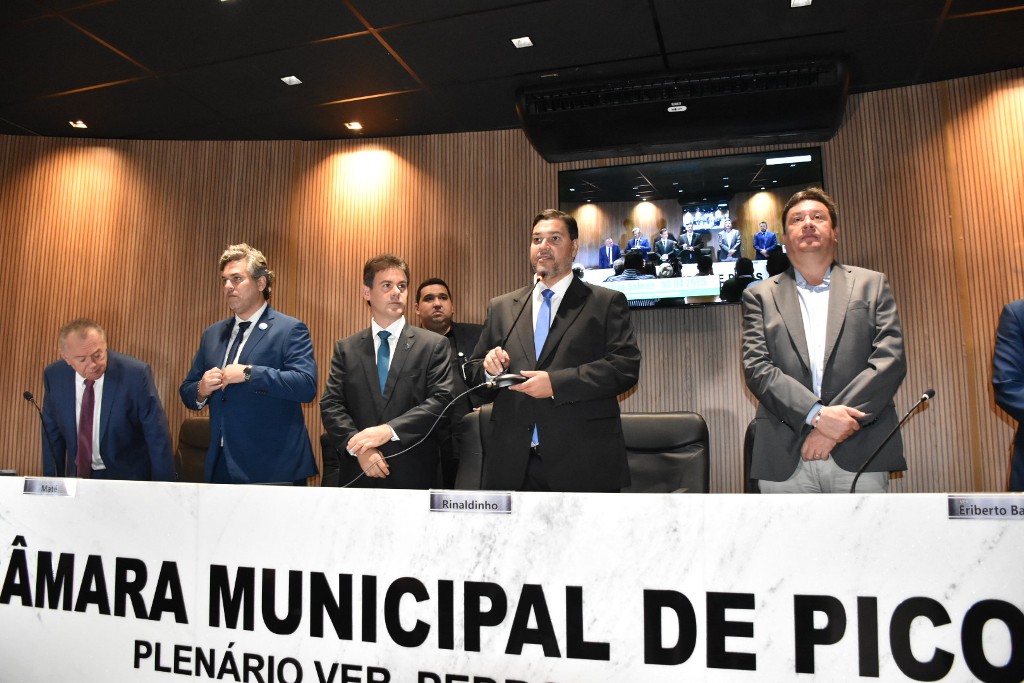 A cerimônia aconteceu no Plenário Pedro Barbosa e foi conduzida pelo presidente da Casa, vereador José Rinaldo Cabral Pereira Filho, o Rinaldinho (MDB), com a presença dos demais parlamentares, autoridades estaduais, ex-prefeitos, lideranças regionais e convidados. A solenidade contou ainda com a execução do Hino Nacional e do Hino de Picos pela Banda de Música Maestro Antônio Lélis, sob regência do maestro Izael Veloso.