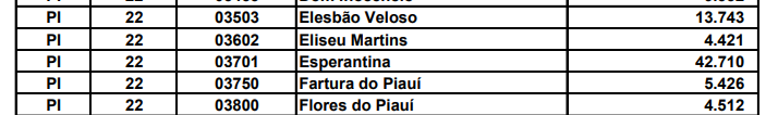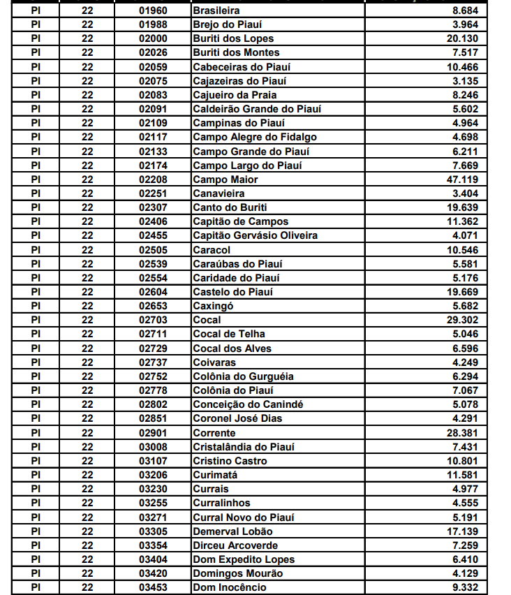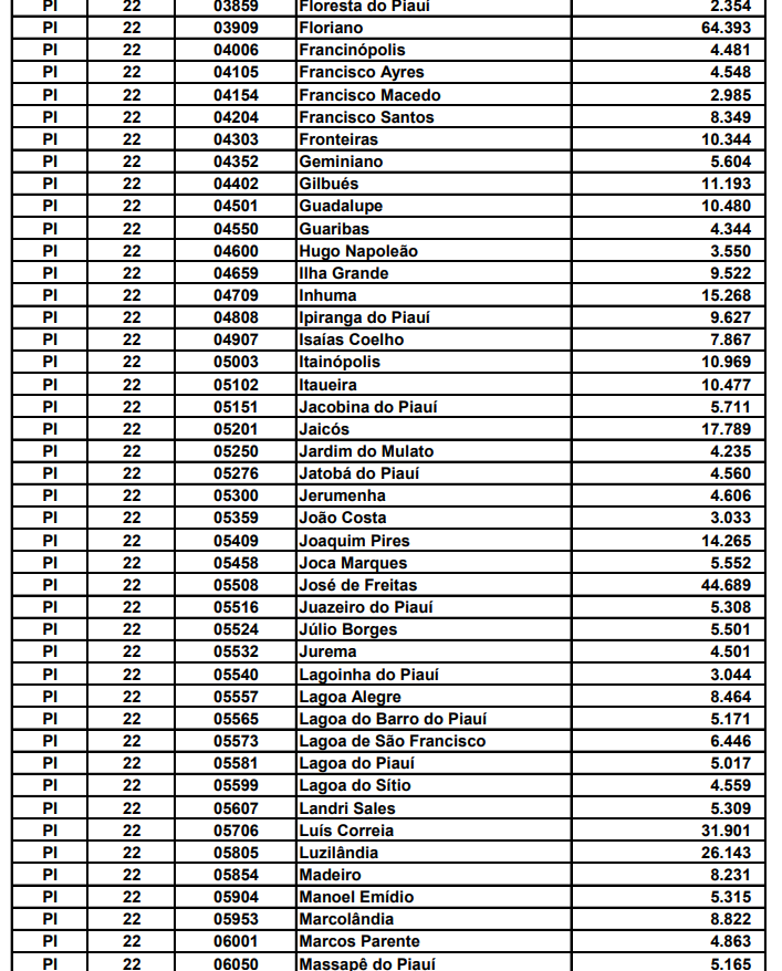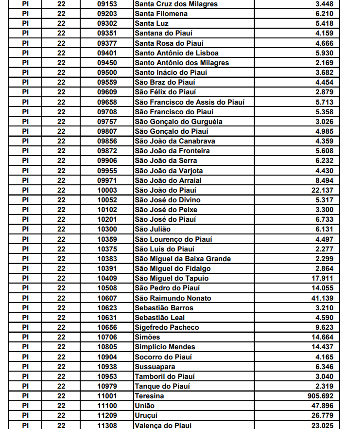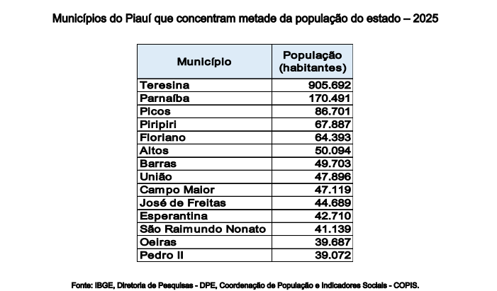 De acordo com essa estimativa, 14 municípios piauienses detêm 50,1% do total da população do estado.