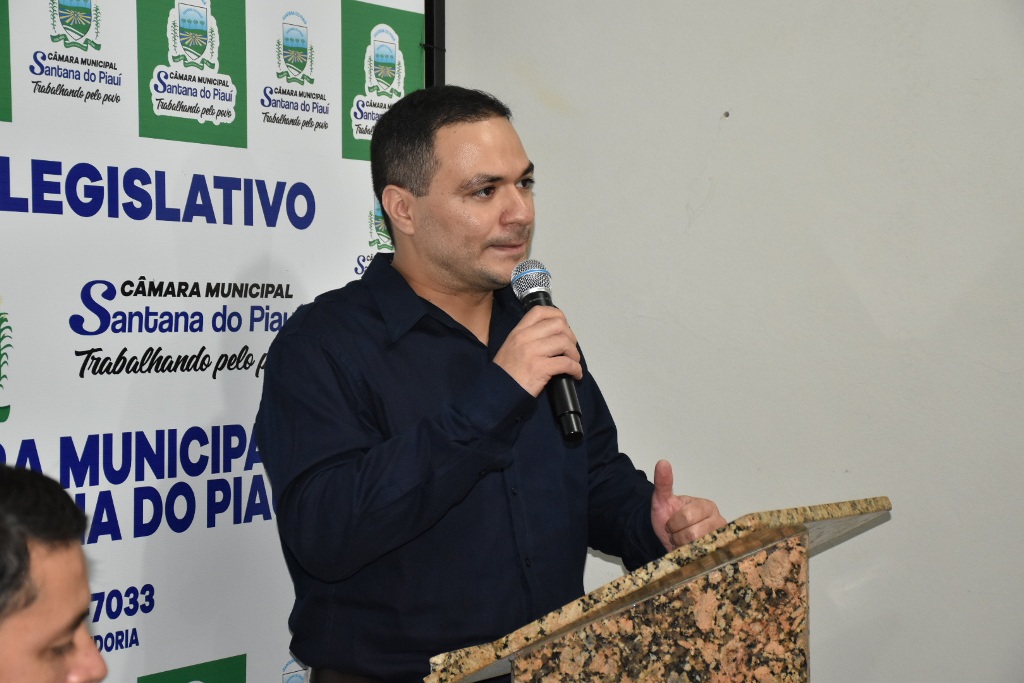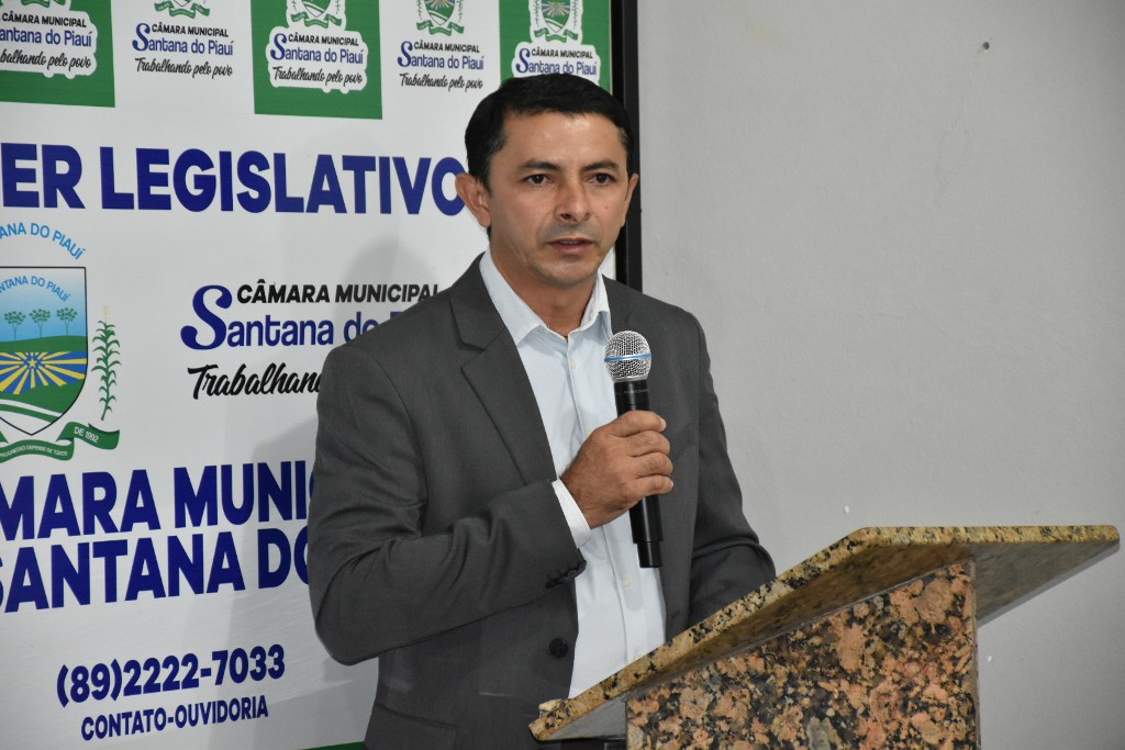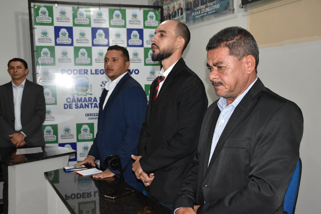 A sessão foi presidida pelo vereador Francisco de Moura Sobrinho, presidente da Câmara Municipal, que abriu os trabalhos em nome do Poder Legislativo santanense, saudando as autoridades e o público presente no plenário da Casa.
