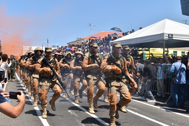 Vários pontos da avenida Nossa Senhora de Fátima e da Rua Coronel Francisco Santos, em Picos, ficaram repletos de pessoas que puderam acompanhar os 50 pelotões, que compuseram o desfile cívico militar deste ano.