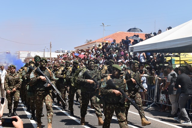 O momento mais esperado foi a passagem do Exército Brasileiro e da Polícia Militar, que apresentaram manobras.