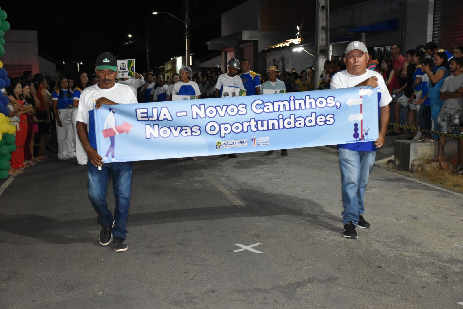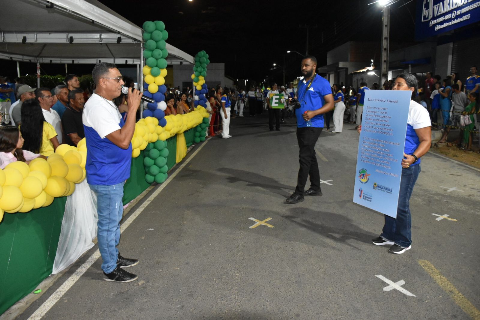 Alunos da Educação de Jovens e Adultos (EJA) também participaram do momento e mostraram que nunca é tarde para retomar os estudos. Um aluno do programa leu uma mensagem durante o desfile.