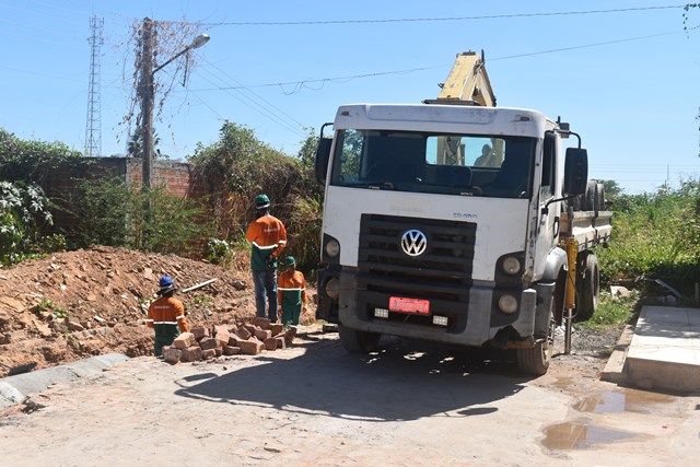 Depois de iniciar uma obra de drenagem na Comunidade Quilombo, no Bairro Morada do Sol, a Secretaria Municipal de Obras, Habitação e Urbanismo, está realizando um serviço semelhante no Bairro Ipueiras.