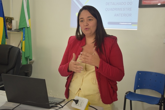 Na sequência, a assessora da Saúde, Miriane Araújo, fez a exposição dos dados e indicadores da área da saúde, apresentando informações sobre investimentos, atendimentos e resultados alcançados no segundo quadrimestre do ano.