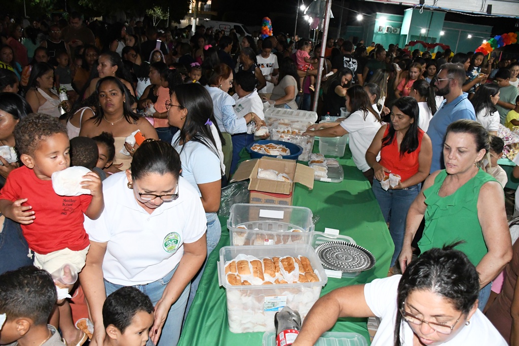 Além das apresentações e brincadeiras, houve distribuição de brinquedos, cachorro quente, refrigerante, picolé e algodão doce, garantindo momentos de pura alegria e descontração para as famílias presentes.