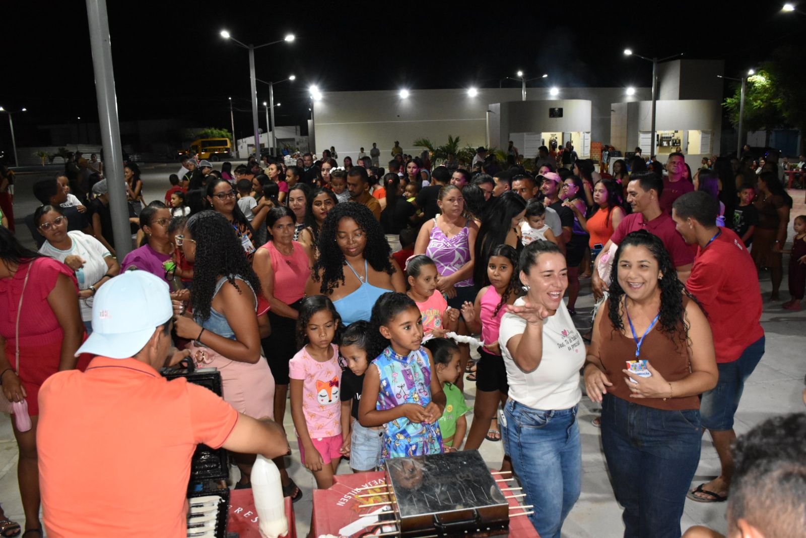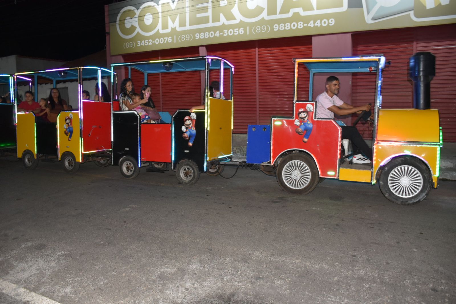 A programação contou com algodão doce, pipoca, lanches e brinquedos, além da presença de personagens infantis e do trem da alegria.