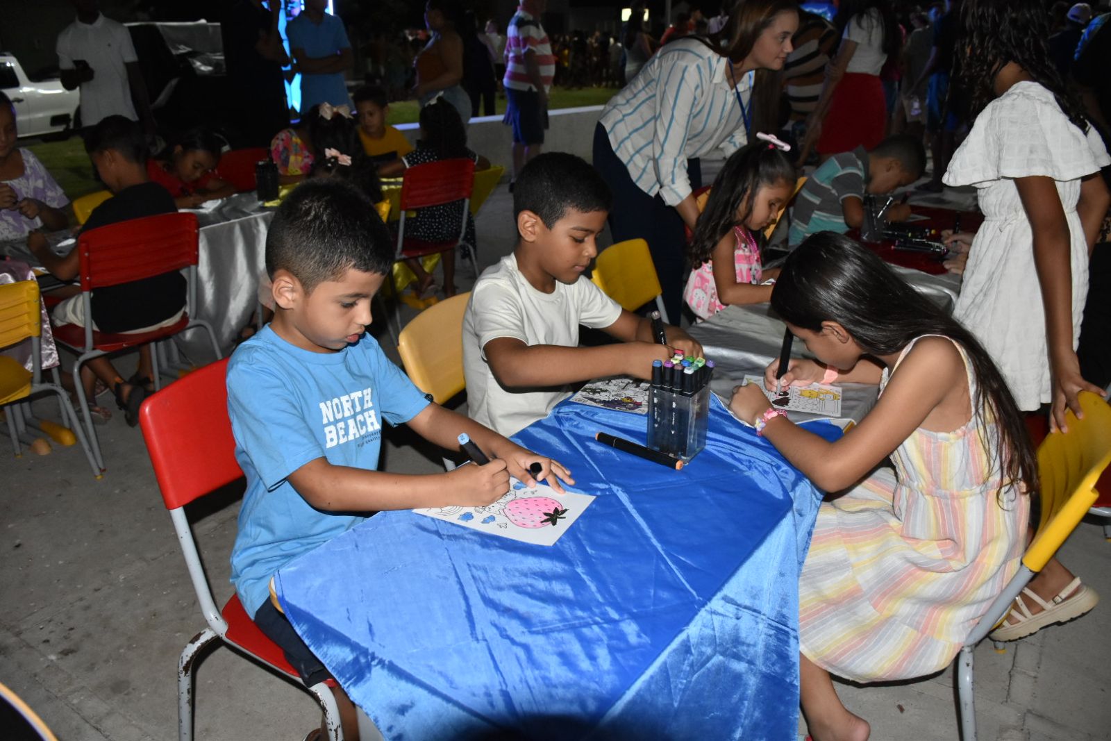 As crianças também puderam soltar a criatividade na área de desenho e se divertir com a pintura de rosto, tornando a festa ainda mais animada e colorida.