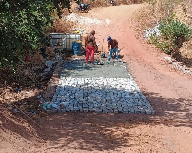 O local, que se encontrava deteriorado devido ao desgaste do tempo e ao fluxo constante de veículos, está recebendo nova aplicação de paralelepípedo, reforçando a estrutura e proporcionando melhor escoamento durante o período chuvoso.