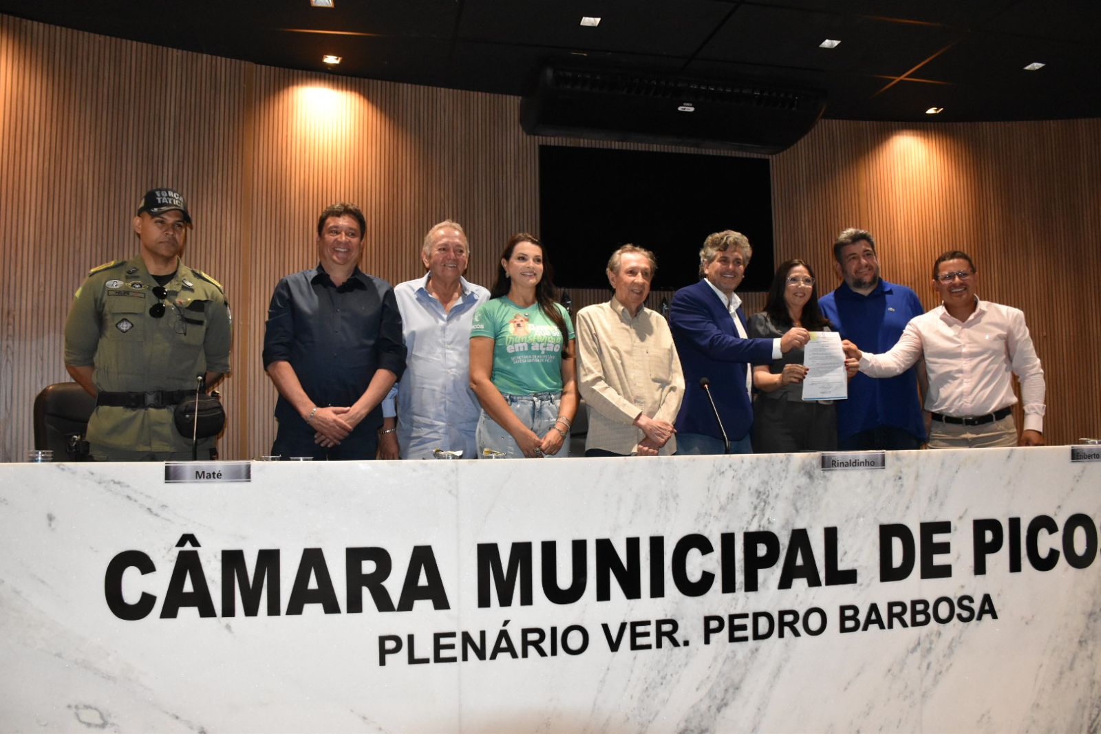 A mesa da solenidade contou com o prefeito Pablo Santos, a vice-prefeita Xandú Néri, o deputado estadual Nerinho, o comandante do 4º BPM, Cel. Felipe Oliveira, além de vereadores e representantes de diversas secretarias municipais.