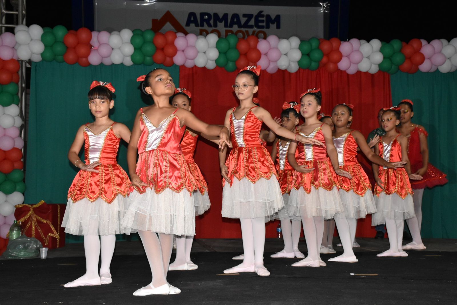 Além da decoração, o evento reuniu apresentações culturais produzidas ao longo do ano pelos serviços oferecidos à comunidade. Alunas do Ballet do Serviço de Convivência e Fortalecimento de Vínculos, que recebem aulas gratuitas, abriram a programação com coreografias das turmas Baby Class e Juvenil. Logo depois, o Grupo da Melhor Idade, que acompanha cerca de 100 idosos do município, subiu ao palco para a sua participação especial.