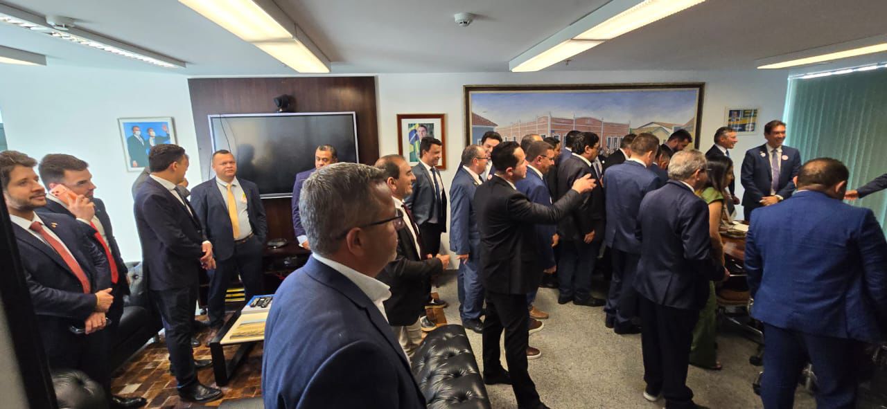 O senador Ciro Nogueira (Progressistas), pré-candidato a reeleição, recebeu uma grande quantidade de prefeitos em seu gabinete, no final da tarde desta terça-feira (02), em seu gabinte em Brasília (DF).