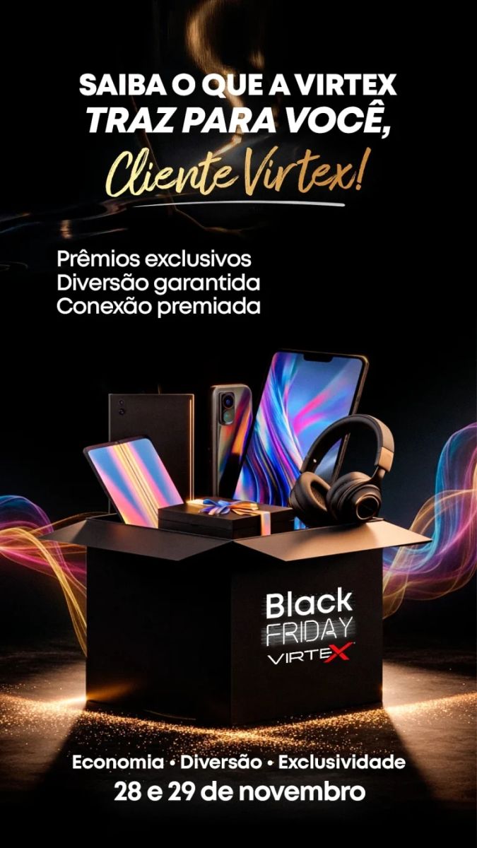 A VirteX, reconhecida nacionalmente pela excelência em satisfação dos usuários, concluiu com sucesso mais uma edição da Black Friday VirteX 2025, reforçando seu posicionamento como empresa que prioriza a experiência, o relacionamento e a fidelização de sua base de assinantes.