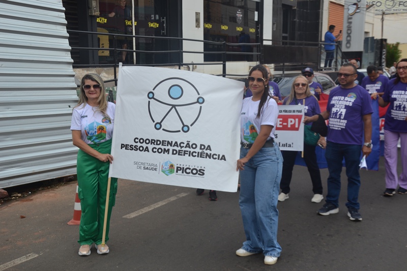 Representando a gestão municipal o secretário de Assistência Social, Luzifrank Júnior, acompanhou o percurso ao lado de demais secretários e vereadores da Câmara Municipal de Picos. Gestores, professores, alunos, famílias e cidadãos engajados na causa da inclusão também participaram da caminhada.