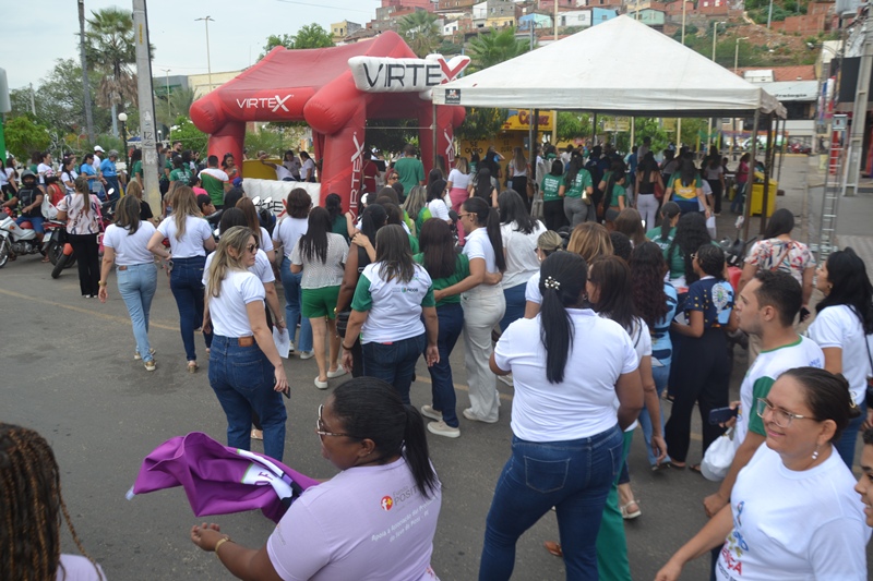 Logo após o momento religioso, teve início a caminhada pela Avenida Getúlio Vargas, reunindo instituições como APAE, COMUDE, SINDSERM, APASPI, entre outras entidades e coletivos sociais.