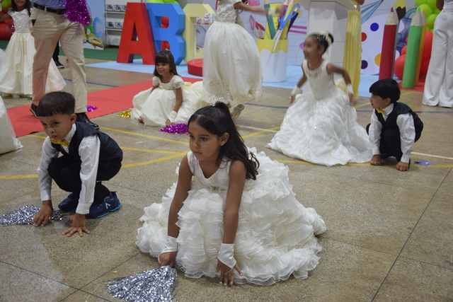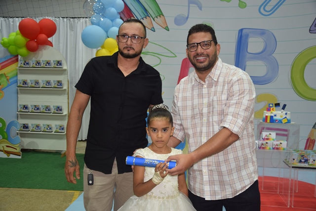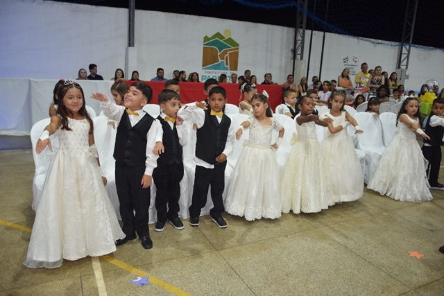 Após a solenidade, a comemoração teve continuidade com show do cantor Héricles Silva e atividades recreativas, como cama elástica, pula-pula e distribuição de sorvetes, garantindo alegria para os pequenos formandos.