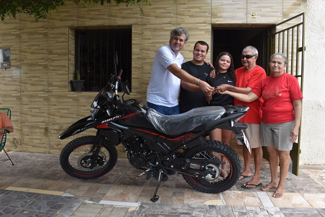 A moto foi entregue na casa de seu Francisco Joaquim da Silva, que mora na Rua Via Paris, no Bairro Morro da AABB.
