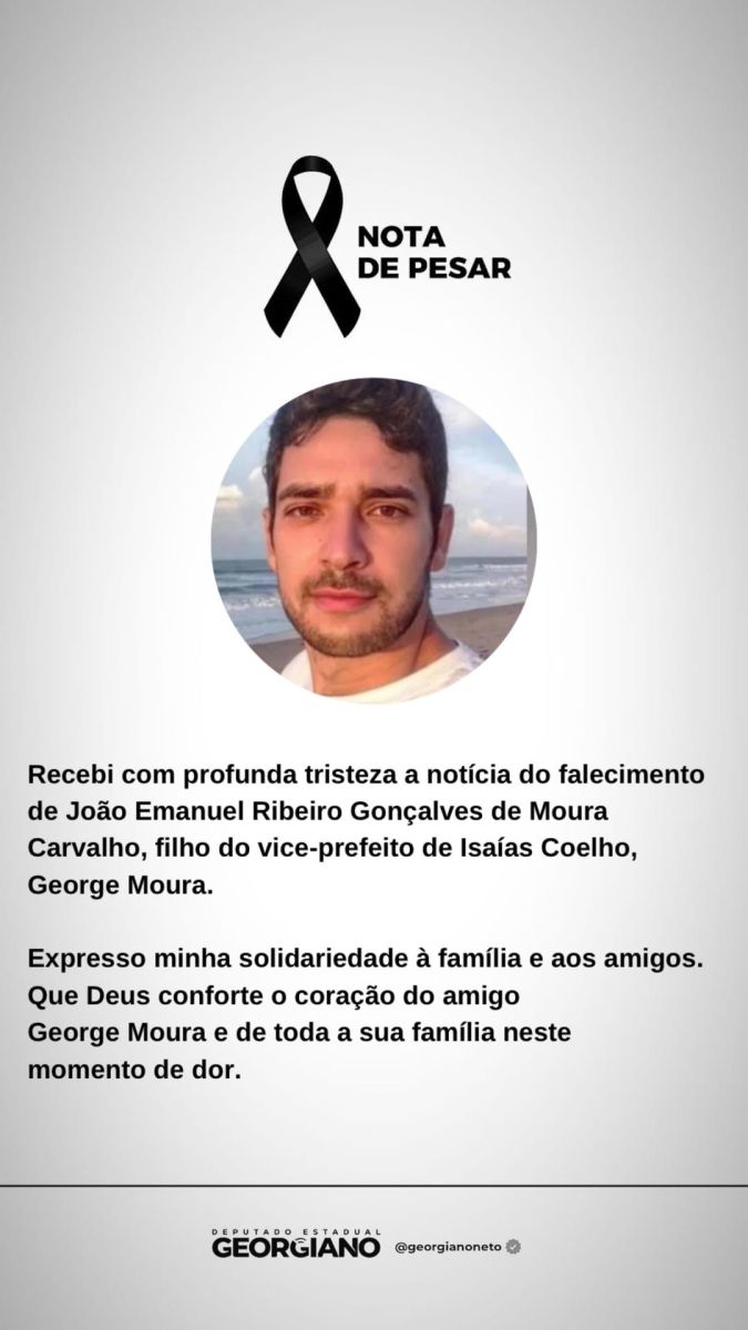 João Emmanuel Ribeiro Gonçalves de Moura Carvalho, filho do vice-prefeito de Isaías Coelho, George Moura, morreu neste domingo (4/01), em Brasília (DF), onde residia. A informação foi confirmada por familiares.