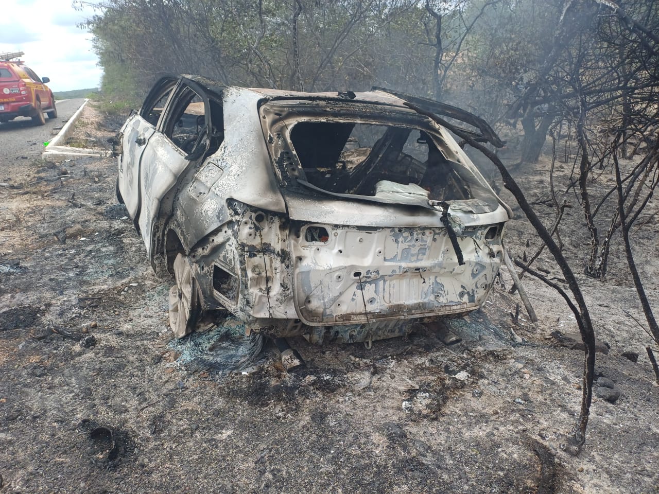 De acordo com o Corpo de Bombeiros, o impacto da batida foi tão intenso que um dos automóveis pegou fogo logo após a colisão. A guarnição foi acionada para conter as chamas. Uma das vítimas morreu carbonizada dentro do veículo incendiado.