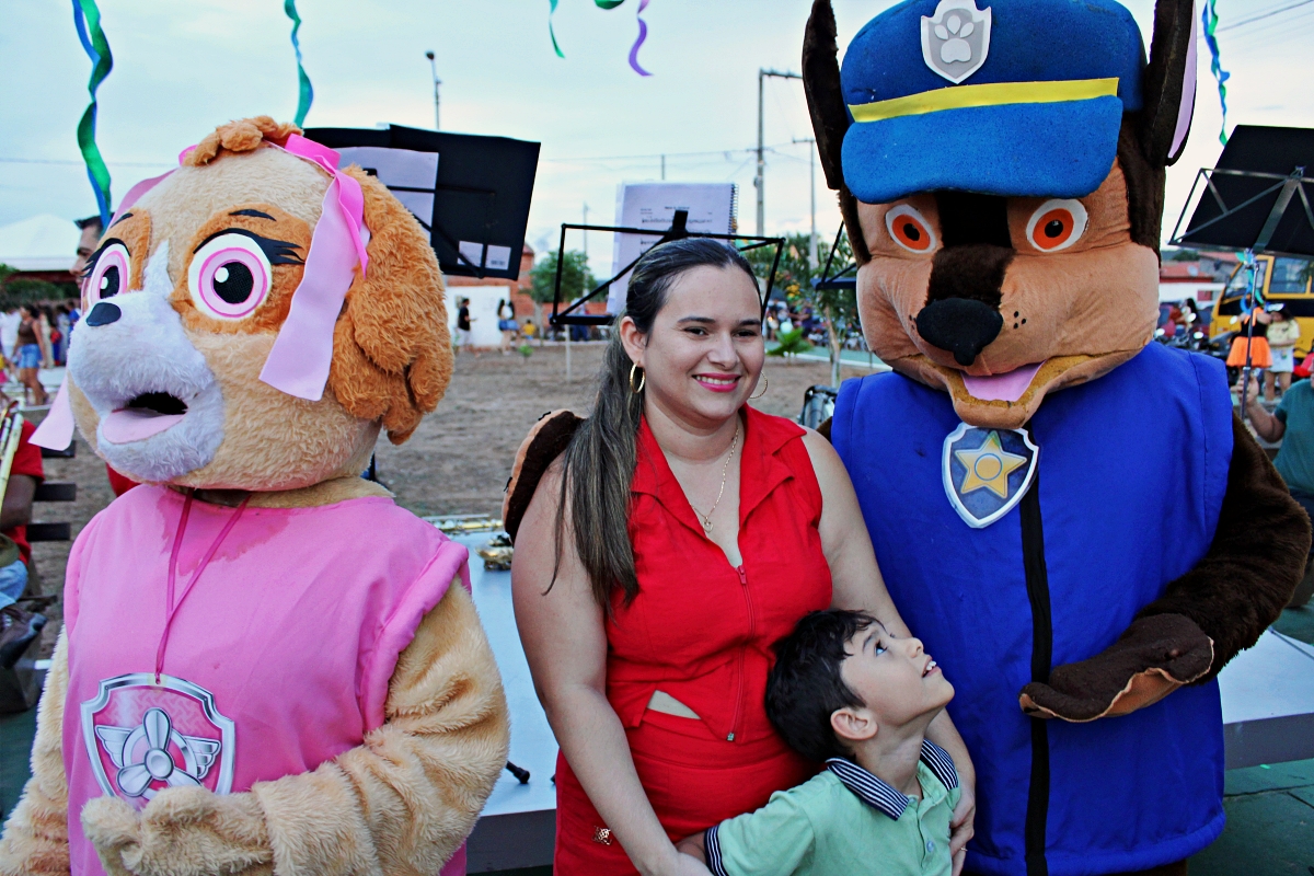 Voltado para o público infantil, o evento reuniu brinquedos como escorrega, cama elástica e piscina de bolinhas, além de algodão-doce, bonecos da Patrulha Canina e fanfarra musical. Muitas crianças participaram fantasiadas e aproveitaram a noite ao lado das famílias.