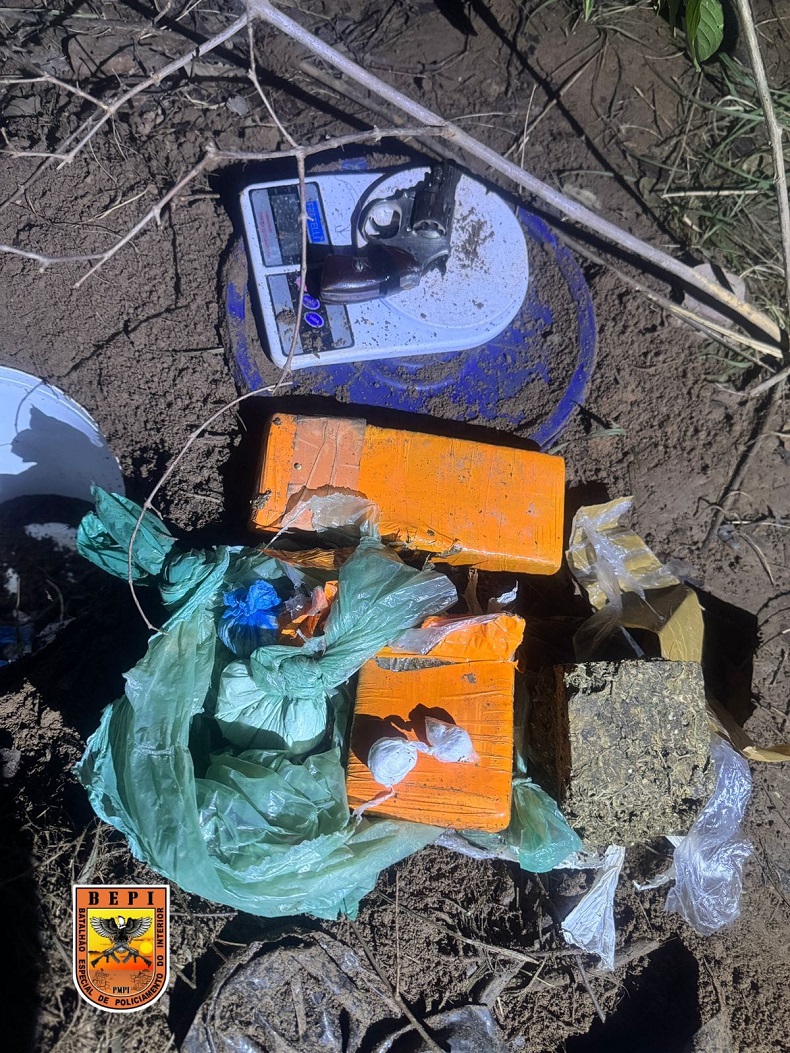 Durante a busca, os militares encontraram dentro da mochila dois tabletes de substância semelhante à cocaína. Ao ser questionado, o homem revelou que havia mais drogas enterradas nas proximidades e indicou o local.