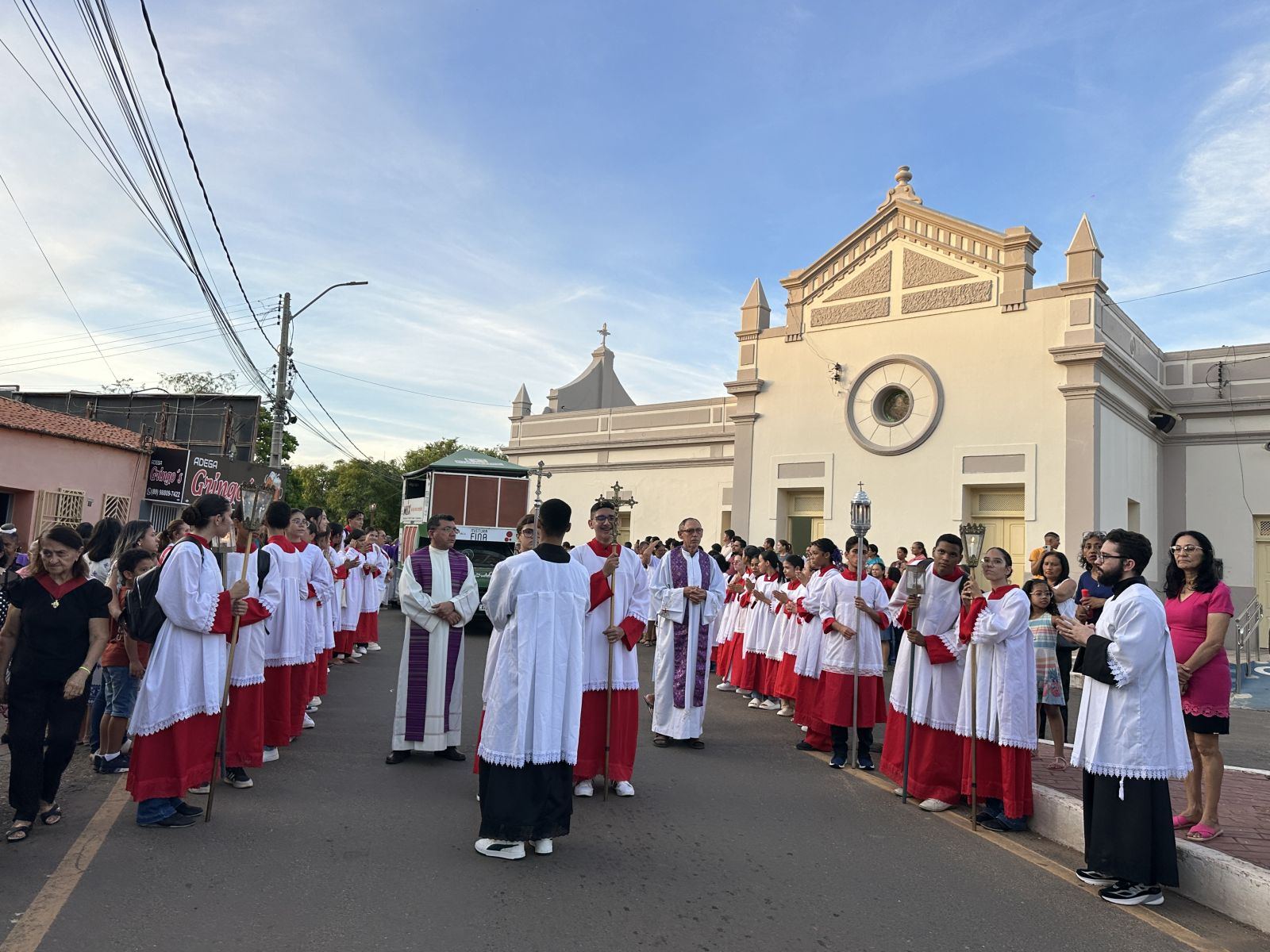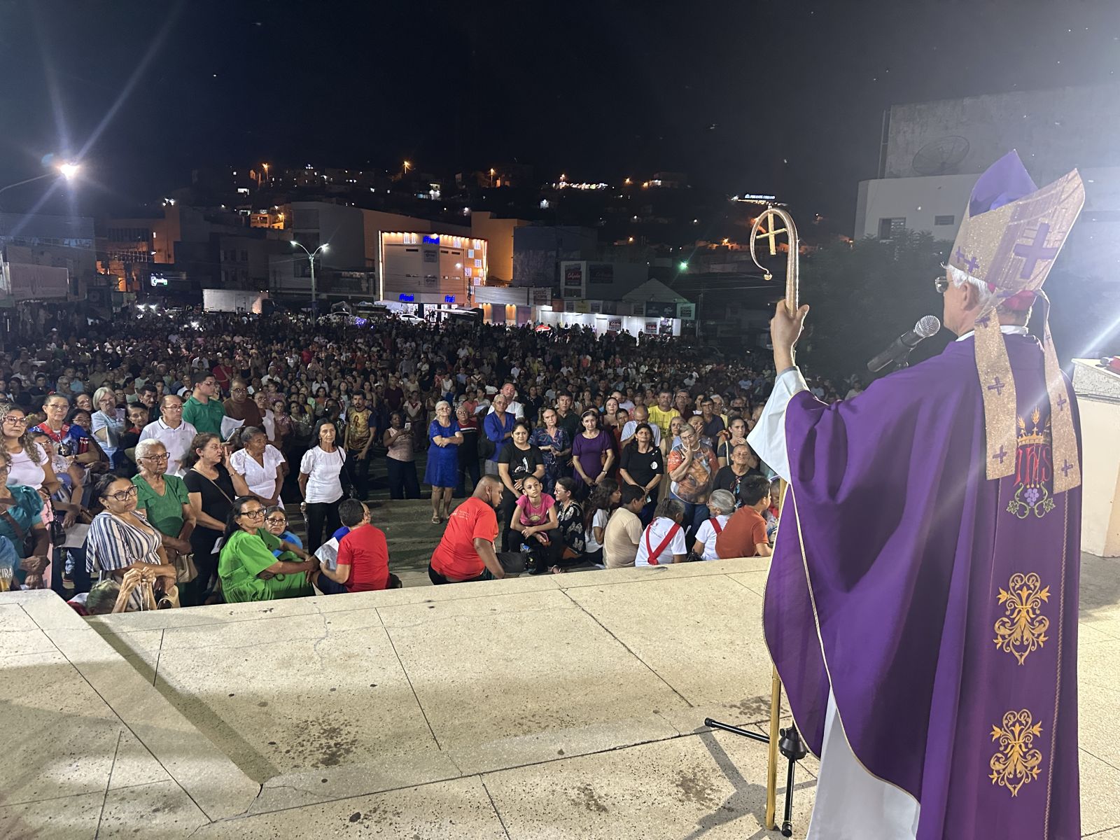 O ponto alto da celebração foi o encontro das imagens na Praça Justino Luz, em frente à Igreja Catedral Nossa Senhora dos Remédios, reunindo uma multidão de fiéis em um momento de forte emoção e espiritualidade.