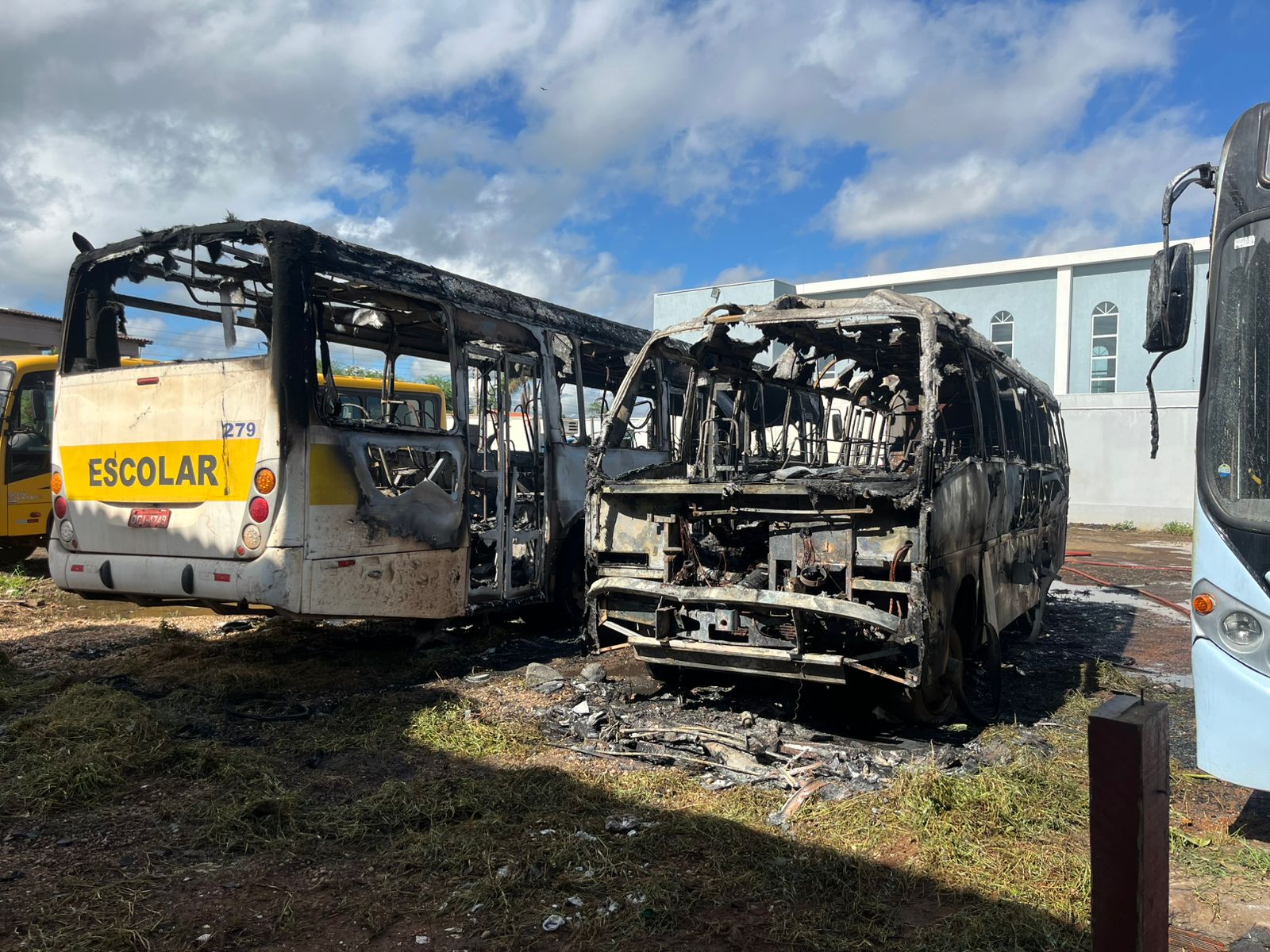 No pátio haviam cerca de dez veículos que realizam diariamente o transporte de alunos, que foram retirados para minimizar os danos. Ninguém ficou ferido.