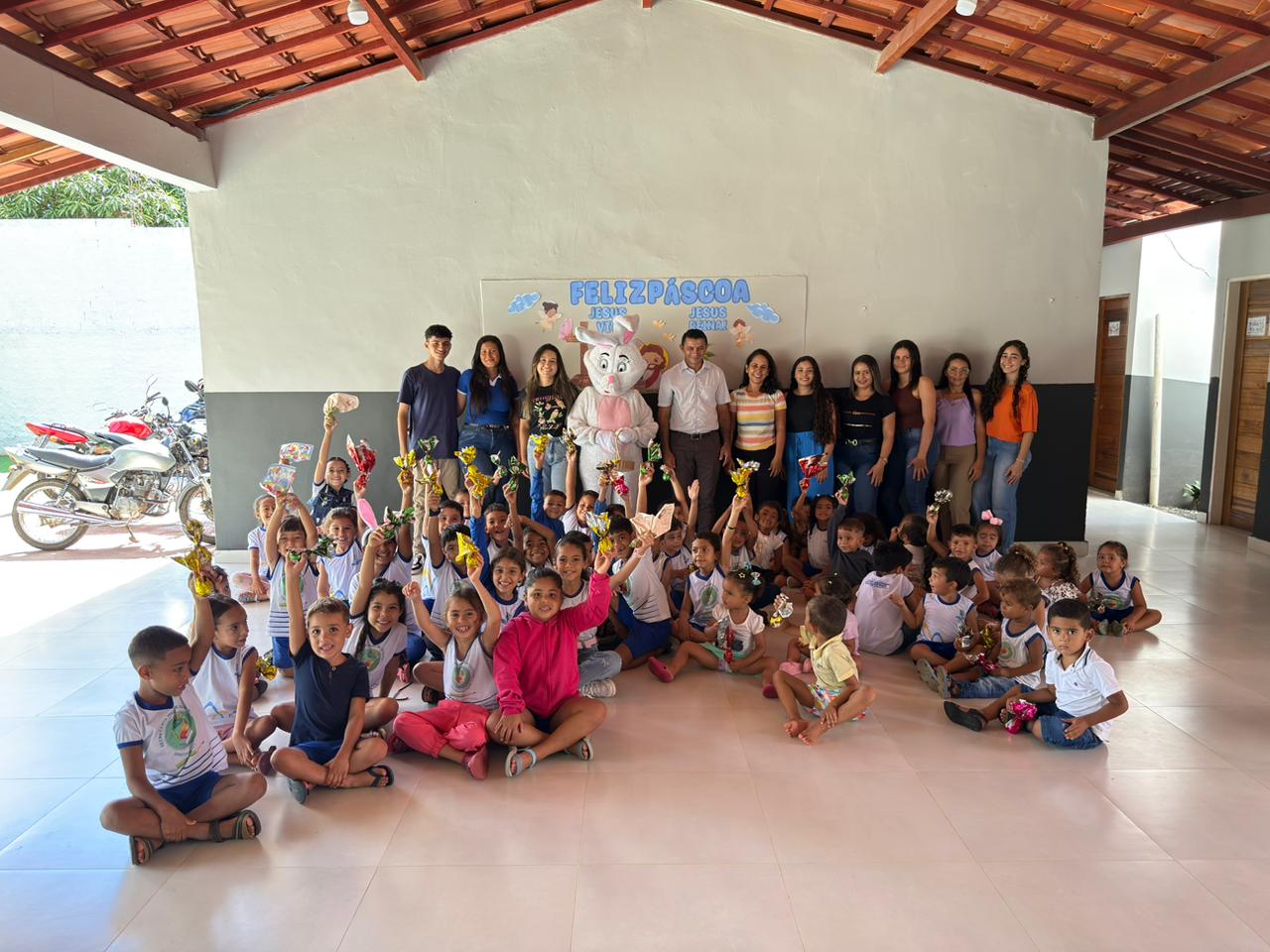 A iniciativa contemplou crianças da Educação Infantil e alunos do Ensino Fundamental I e II, levando alegria e fortalecendo o espírito pascal entre os estudantes. A entrega contou ainda com a presença do Coelho da Páscoa, que animou o momento e tornou a ação ainda mais especial para os pequenos.