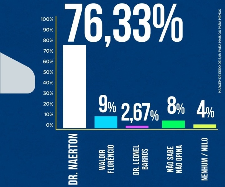 O atual vice-prefeito aparece com 76,33% das intenções de voto na pesquisa estimulada