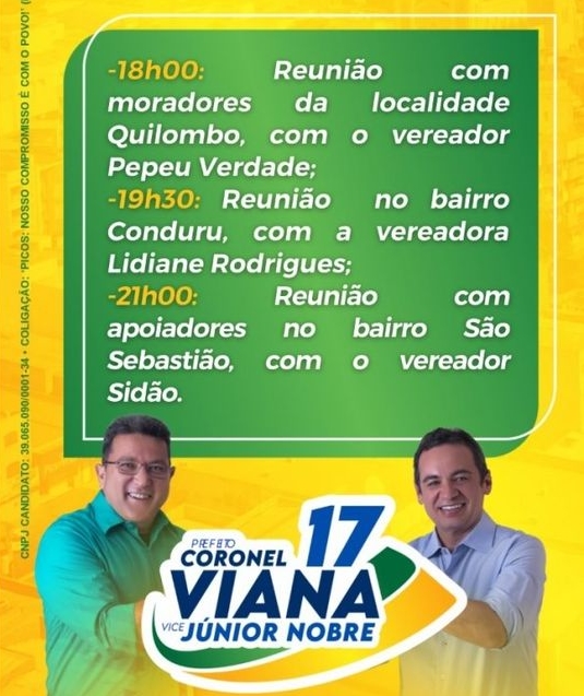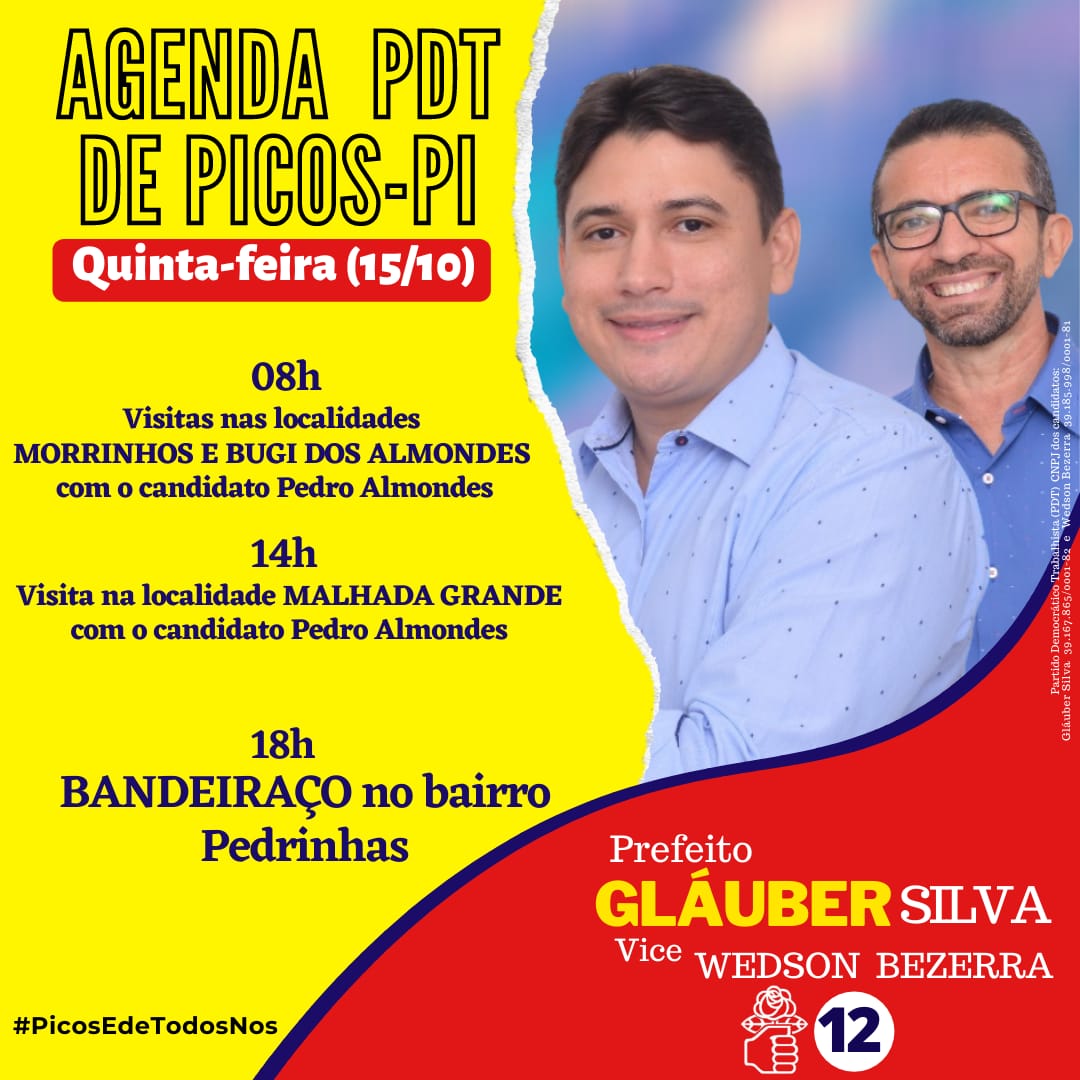 Os candidatos a prefeito e vice-prefeito de Picos – Araujinho (PT), Gil Paraibano (Progressistas), Coronel Viana (PSL) e Glauber Silva (PDT) - diariamente visitam as comunidades picoenses dando continuidade à agenda de campanha.