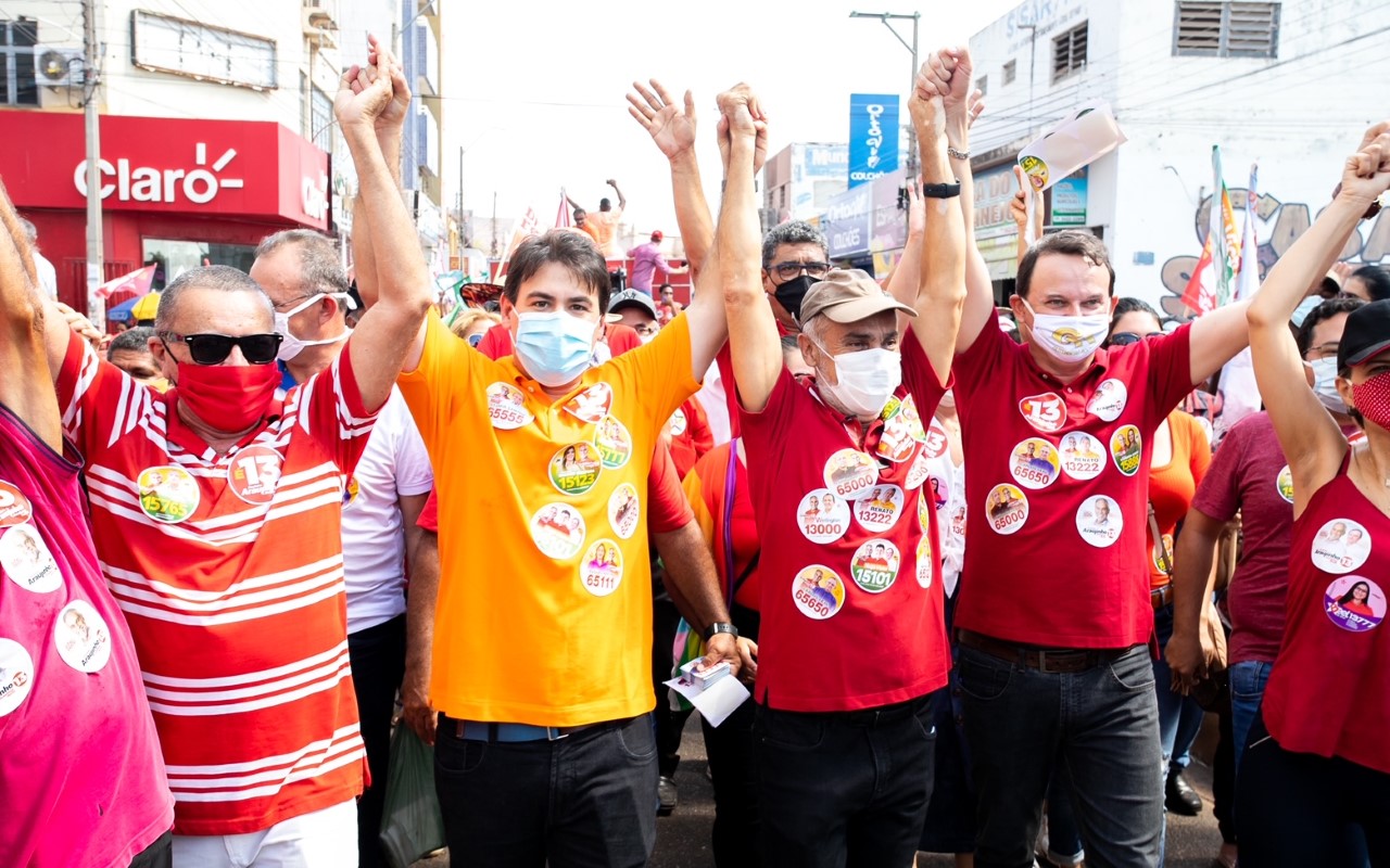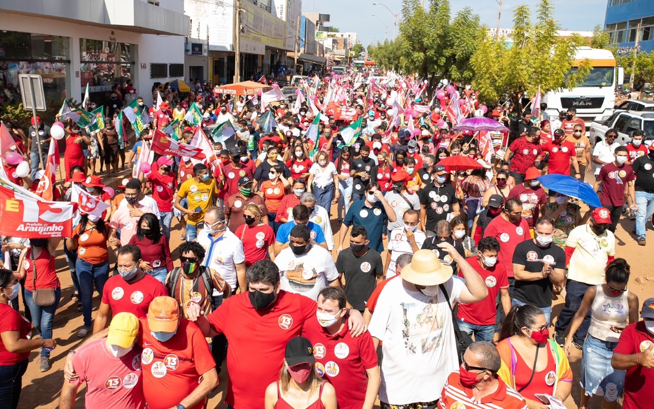 Com uma multidão de apoiadores, o candidato a prefeito de Picos, Araujinho (PT), realizou neste sábado (17), uma passeata que tomou conta da cidade, saindo do segundo balão do Bairro Bomba em direção ao centro. A concentração iniciou às 07h30, reunindo vereadores, lideranças, militância e sociedade em geral para manifestarem apoio ao projeto do candidato.