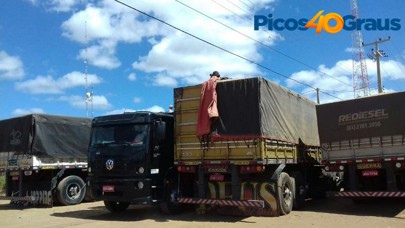 Na manhã desta segunda alguns veÃculos retidos ainda realizavam o transbordo da carga (Foto: Picos 40 graus)