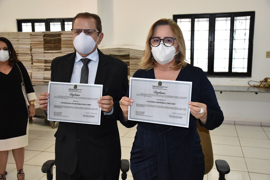 Na oportunidade foram diplomados o prefeito eleito, Djalma Policarpo (PP); a vice-prefeita eleita, Cleydiana Bezerra (MDB); vereadores e suplentes.