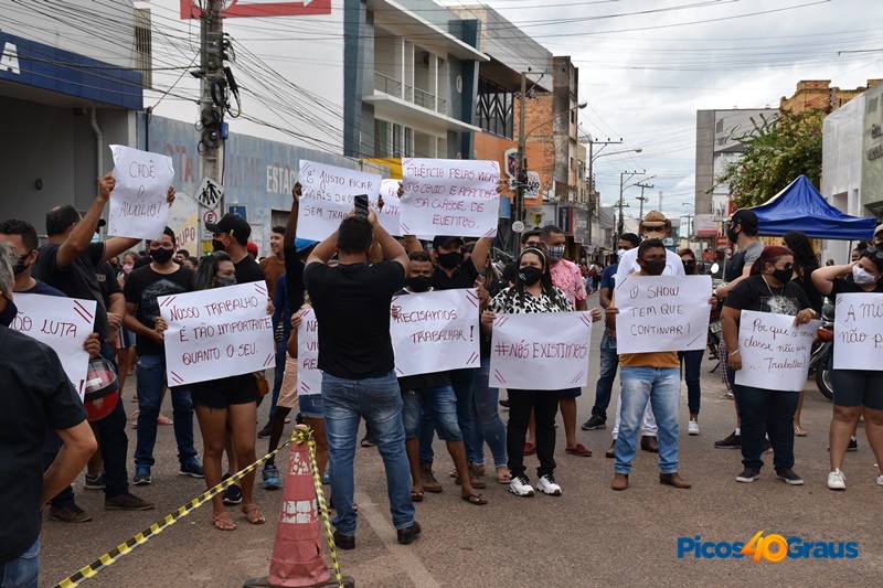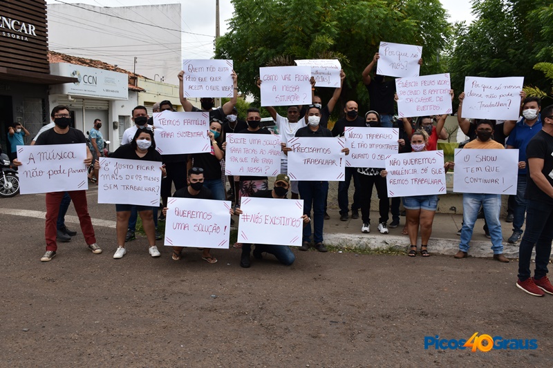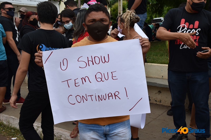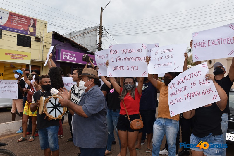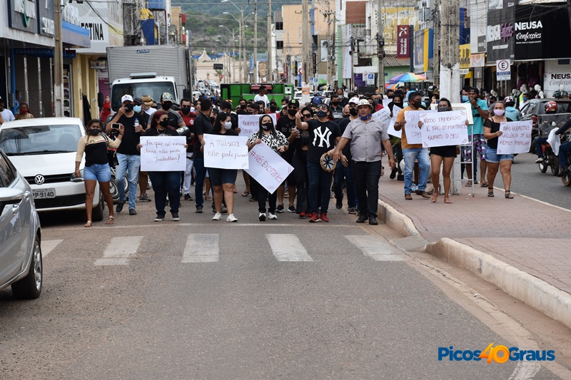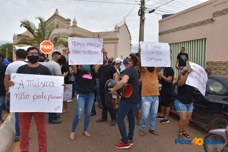 Cantores, músicos e promotores de eventos foram as ruas na manhã desta sexta-feira, 29 de janeiro, em Picos. A categoria cobra a flexibilização dos decretos, que restringem eventos públicos e privados e cancelam shows.