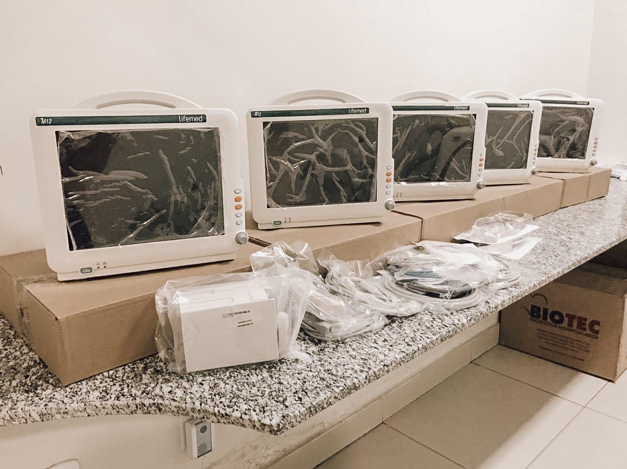 Foram entregues cinco respiradores novos, um carro de anestesia, um berço aquecido, cinco monitores, além medicamentos, testes rápidos, material de limpeza, luvas, máscaras, aventais e diversos insumos, alguns doados pela Secretaria Estadual de Saúde.